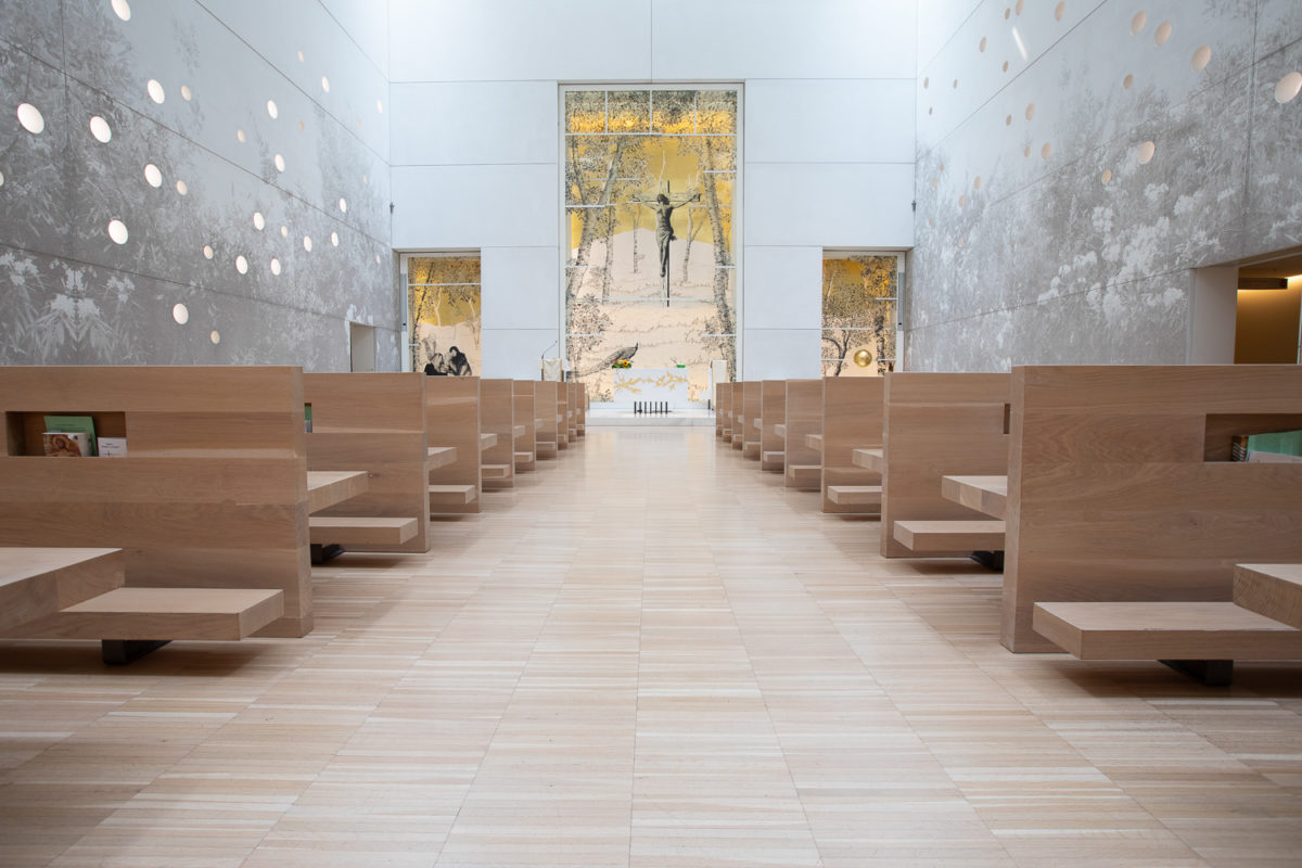 Il legno industriale, grazie all’utilizzo di prodotti specifici, ha acquisito un’immagine più contemporanea conferendo al luogo di culto un taglio decisamente moderno.
